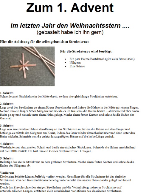 An dieser Stelle auch vielen lieben Dank an alle, die mir mit Rat und Tat sowie Material geholfen haben, dass ich kurzfristig den "Advent 2021" gestalten konnte